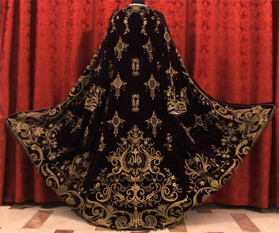 Túnica bordada sobre terciopelo morado