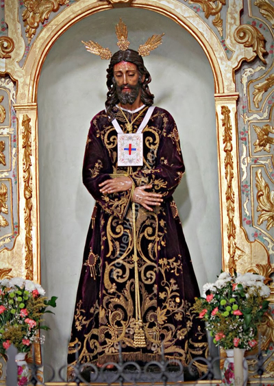 Nuestro Padre Jesús del Rescate vistiendo la túnica en su capilla